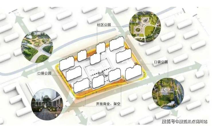 街角约33*30M嵌入城心的秘境花园,邻里共享的社交平台,西北角生活意趣的商业空间,形成开放性城市空间,慢行公园的路径,彰显街区的社会价值。
