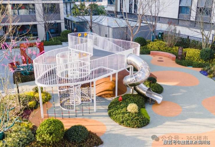 园区里还设有儿童乐园等功能空间,踩在柔软的塑胶上,也不用过多担心孩子磕碰,激活小朋友们的运动潜能。