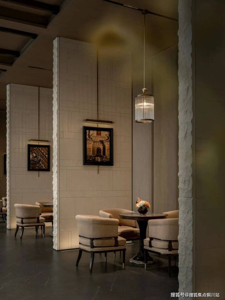 首先,设计师以造景与借景等设计手法模糊室内外界限、实现空间之间的自然渗透与过渡。会所则依托围合式布局与四周落地窗,将自然光与景观充分引入。洽谈、私宴、健身等主要功能沿窗布置,使光与景伴随每一处空间体验,融为与自然对话的有机整体。