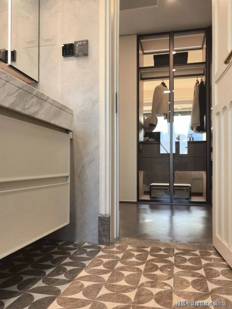 于方寸之间,定制拼花地面构建秩序井然美学。卫浴三分离设计、充足的隐形收纳、以及对光线与材质的精细考量,让每一次晨间洗漱与夜晚沐浴,都从容如仪式。
