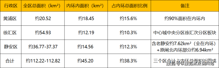 黄浦内环一徐汇内环一静安内环占上海内环占比