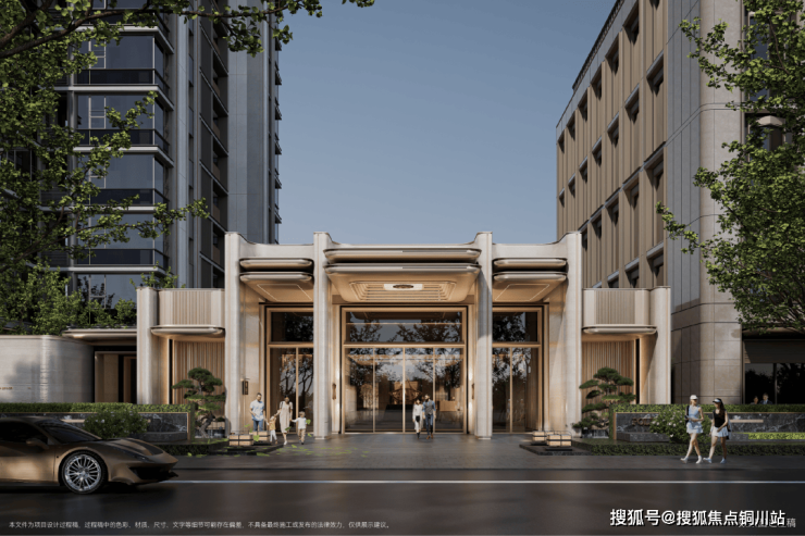 走进小区,宽约24米、高约6米的阔绰门庭先让人感受尺度感,再穿越艺廊式归家巷道,经历落客大堂、迎宾大堂、归家大堂三重主题空间,每一步都像在卸下城市疲惫,把生活节奏慢下来。