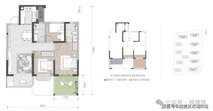 空中花园面积达18.5㎡,可以实现很多的创意空间打造,奇数层加上赠送使用率127%,实用空间约105㎡。