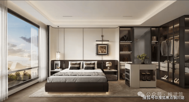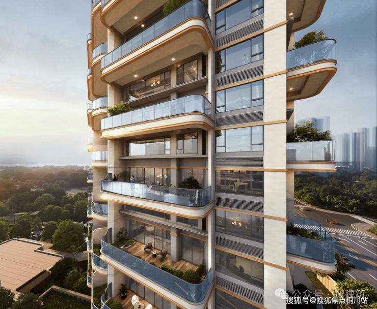 在建筑风格上,项目以“一滴水的时空游动”作为视觉灵感,外观以舒展的线条与局部曲线的运用赋予建筑柔和姿态,打造当下最前沿的“流体建筑”,强调自然通风与采光的对流,呈现融合东方韵味的当代建筑语汇,超越传统人居审美。