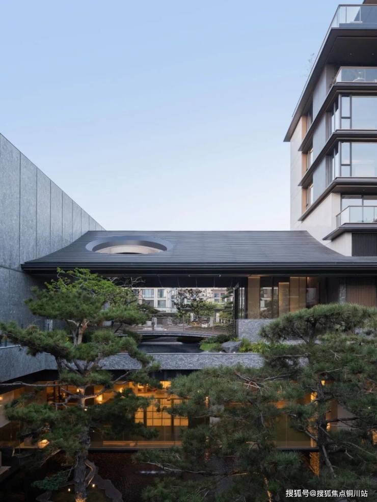 整个建筑外立面更是将现代美学融入。石材+铝板+大面积玻璃的组合,赋予空间前所未有的通透与灵动。就像是一件艺术品,兼具东方韵味和现代质感。