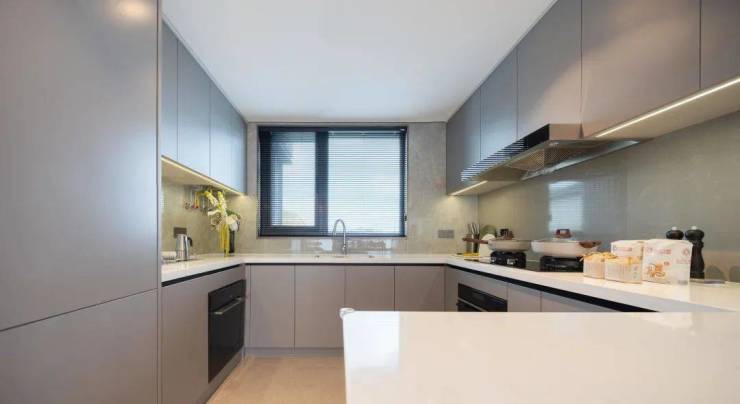 U型中西厨+岛台的设计,中西美食自如切换,满足多代人烹饪需求的同时,也让做饭的过程变得开放而有趣,全家人可以在此互动交流,共享烹饪的乐趣。