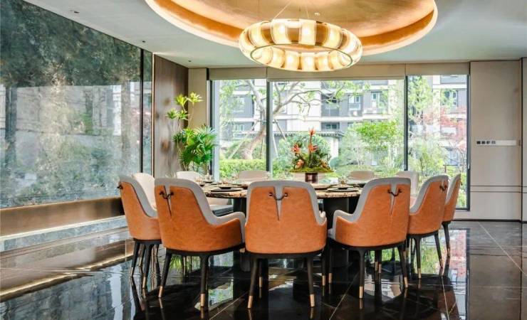 比如私宴会客厅,将餐厅、厨房、水吧、茶台等统统配齐,且餐厅背景墙采用的都是整面岩板,商务宴请时格调拉满!