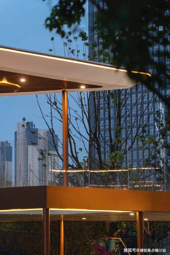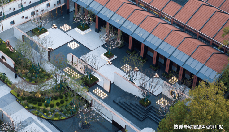 小区园林部分实景呈现,全冠移植的大树与低矮灌木,搭配出满园春色。在项目施工阶段,这些树木提前种植,等交房时,就已绿树成荫。 园林里, 廊桥落客区、中央悬挑会客平台、邻里社交花园等设计,别出心裁。