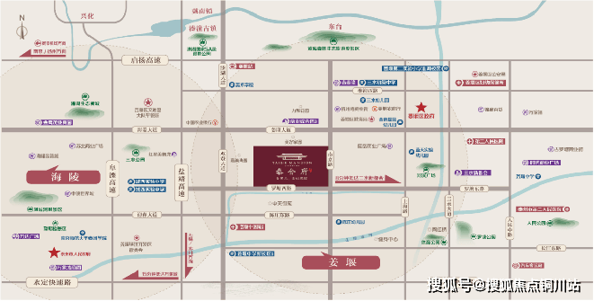 从地理位置来说,紧邻姜堰区城府,与城市主干道姜堰大道相邻。