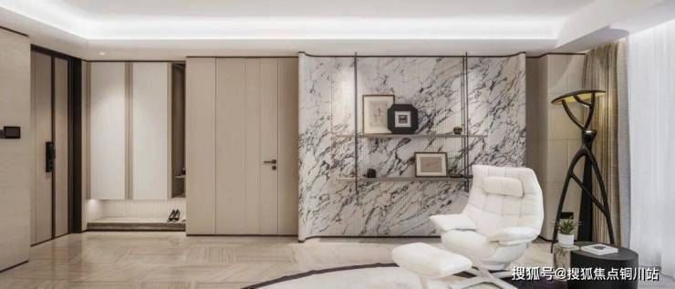履迹全球,千臻万选,大量运用云中翡翠、云水谣的奢石,开创性使用罗马拿铁洞石岛台、整面白沙石沙发背景墙、高定岩板西厨柜、枫影木等稀贵建材,重塑生活的舒适与优雅。