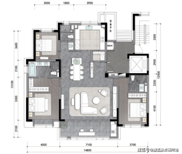 南区10幢楼则都是大户型产品,220㎡、250㎡大平层担当主力,保障了各个组团业主的邻里体验感。