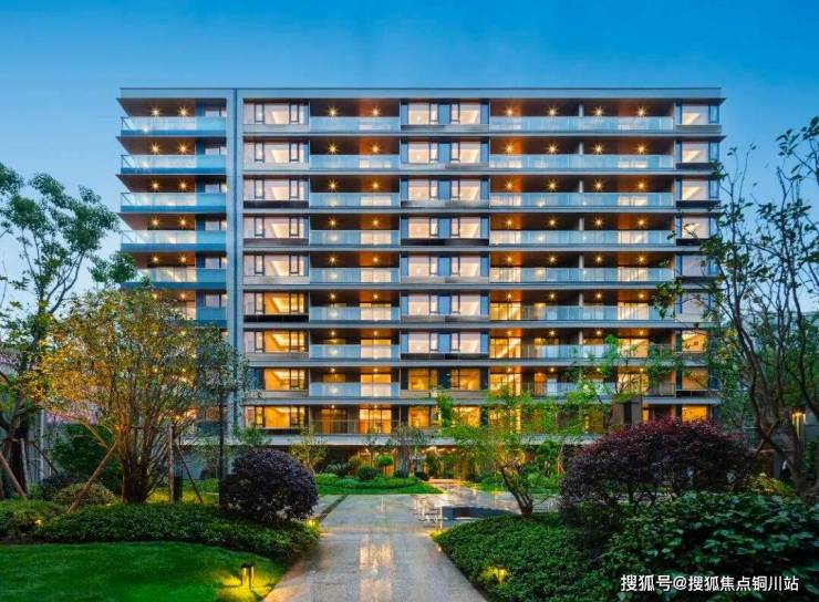 翠著邱山里容积率仅1.52,建筑设计由GOA大象设计团队操刀,5幢总层高仅10层的小高层在临平山南麓一字排开,南向香槟金铝板搭配大块玻璃幕墙,简约大气。
