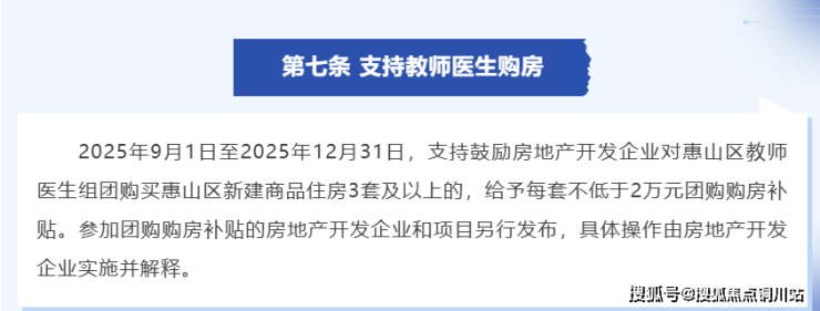惠山区始终将人才作为第一资源,深入实施人才强区战略。2025年3月,惠山区重磅推出"惠八条"房地产促消费措施,其中第七条关于“ 支持教师医生购房”政策尤为亮眼。