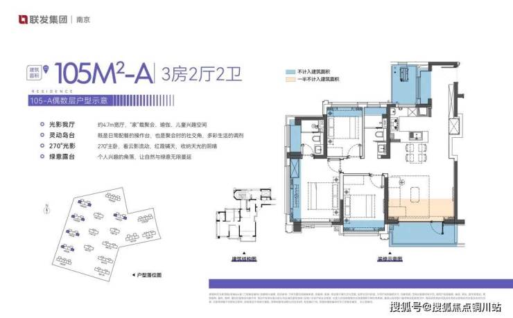 建面约105㎡户型,约4.7米宽厅可满足女主人瑜伽、小朋友绘本角等多种场景;