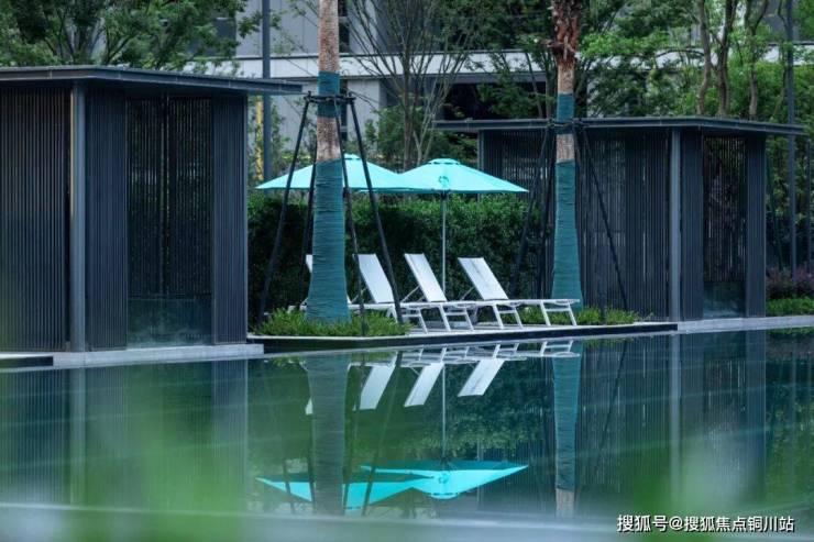 更贴心的是,围绕着水池还配置了景观休闲卡座,在水光潋滟和树荫摇曳中,氤氲出一种轻松惬意的空间氛围。