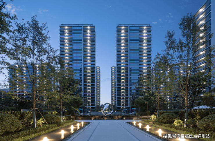 潺潺的水流声,让我们放慢下脚步,水景两侧是对称的迎宾树阵构建的归家仪式感。