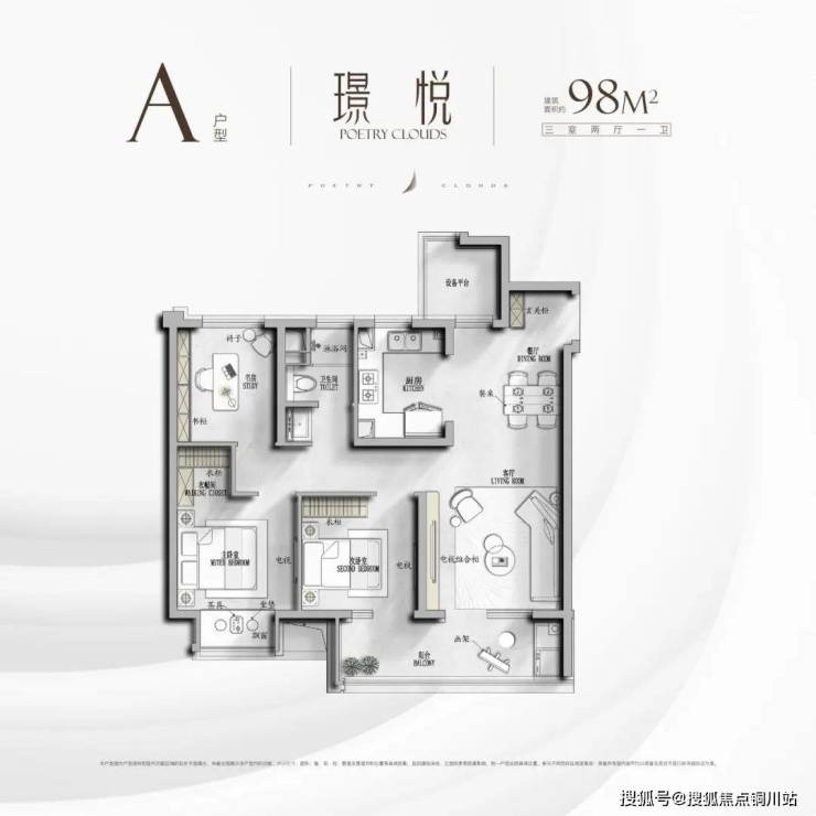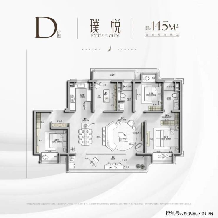 户型设计:设计有 98㎡、105㎡、128㎡、145㎡共 4 个户型,其中 2、3、4# 楼为 2 梯 2 户设计,面积 128㎡;6# 楼 2 梯 2 户设计,面积 145㎡;5、7# 楼 2 梯 4 户设计,中间套面积 98㎡,边套 106㎡。