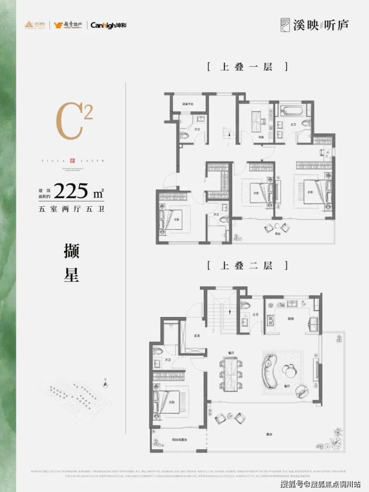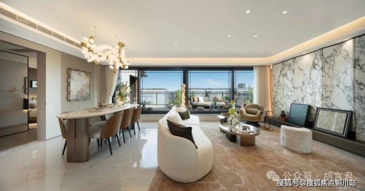 225方边套上叠,大转角厅设计,270度转角山景大露台!露台进深最深约3.3米,面积约37方,南向父母房也是直连阳台。这个客厅到时宴请朋友可真的太有面了,看腻了江景大平层,在茶山溪水之间,举目皆景,也是另外一番人生的极致享受。