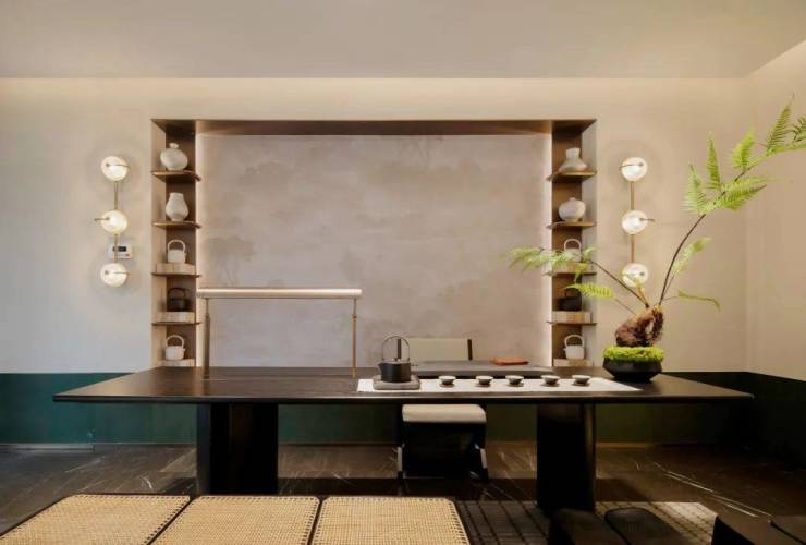 穿过大堂就是下沉式庭院,地下一层配备了约400㎡的会所空间,包括4点半学堂、健身房、茶室等。因项目本身体量也不大,各个会所空间设计得比较紧凑。