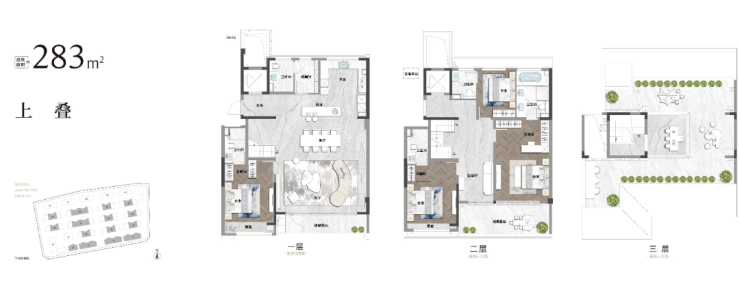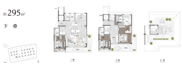 项目规划了建面约265-295㎡归心叠院及建面约186㎡低密真洋房。
