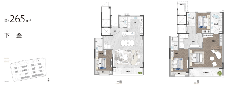 起步265㎡的奢阔尺度,将大平层的横向舒展与叠墅的立体空间完美融合。