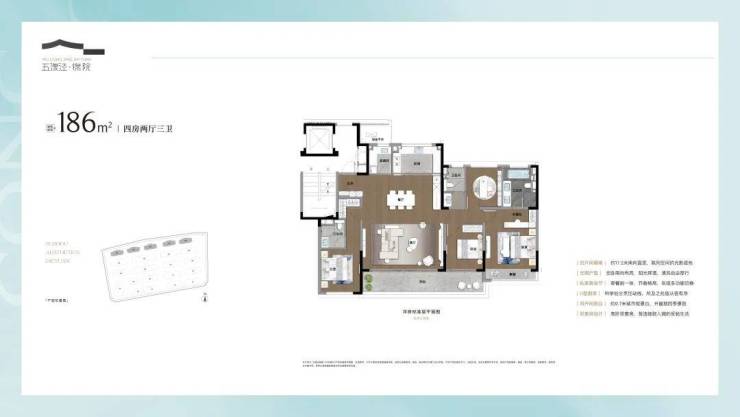 建面约186㎡的洋房户型,以"南向四开间+三卧朝南"的格局,重构改善型人居的空间哲学。