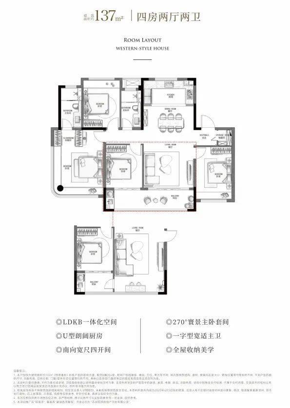 户型设计上,项目一共打造了4种户型——建面约115㎡的3房2厅2卫、约137㎡的4房2厅2卫、约139㎡的4房2厅2卫、约180㎡的4房2厅3卫,开启一场关于洋房空间范式的革命性实践: