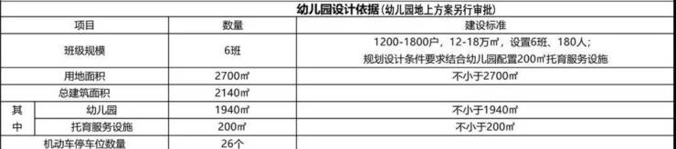 2、项目内应配建1所6班幼儿园,用地面积不小于2700 ㎡,建筑面积不小于 1940 ㎡,并按照《市人民政府关于进一步加强住宅区配套幼儿园建设和管理的意见》(武政规[2017]63 号)规定执行,建成后其用地及房屋产权无偿移交项目所在区教育部门。