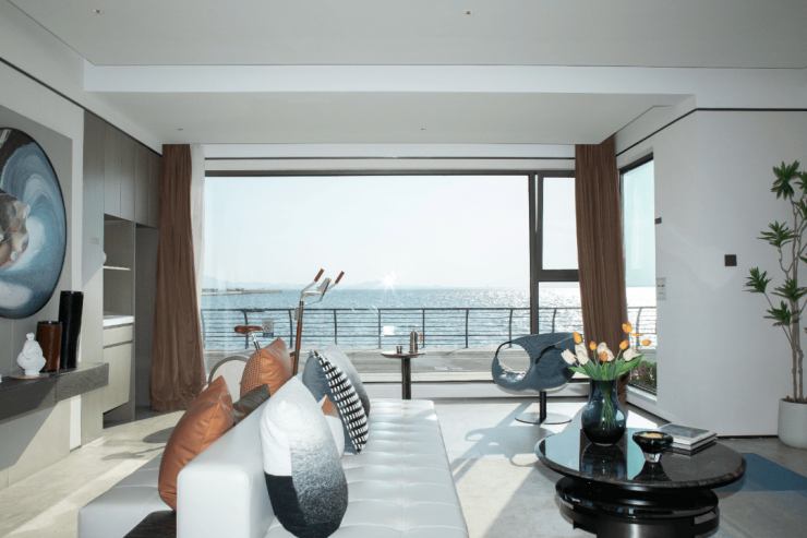 143平方米户型为精装修交付,布局为三室两厅两卫,采用了经典的三面朝南设计,宽敞的开间与舒适的进深比例,加上约3.15米的层高,营造出空间感极佳的居住环境。宽敞舒适的三居室户型实现“居室内观海,观海中生活”的沉浸式体验。