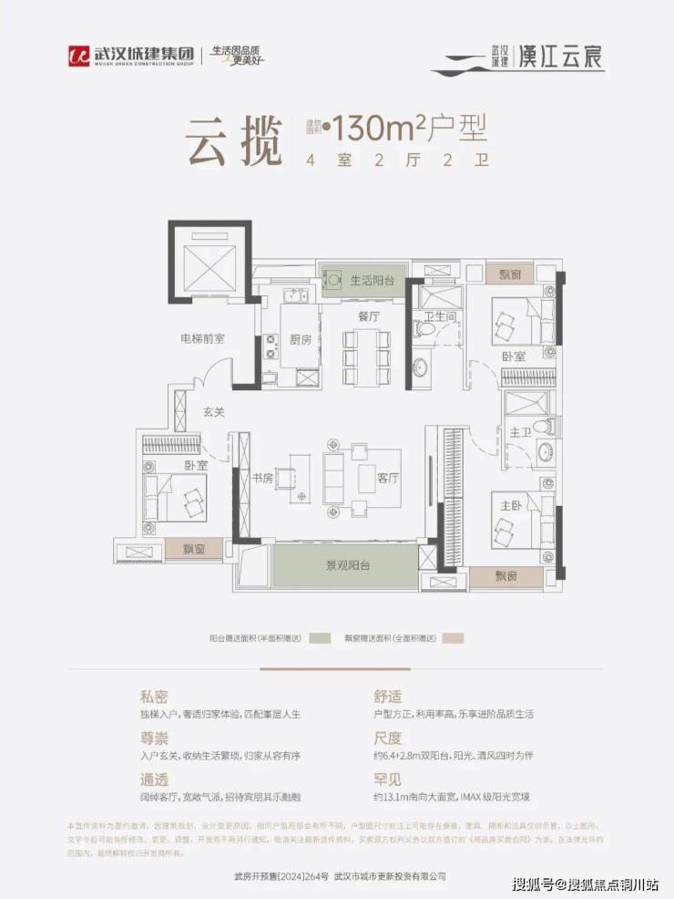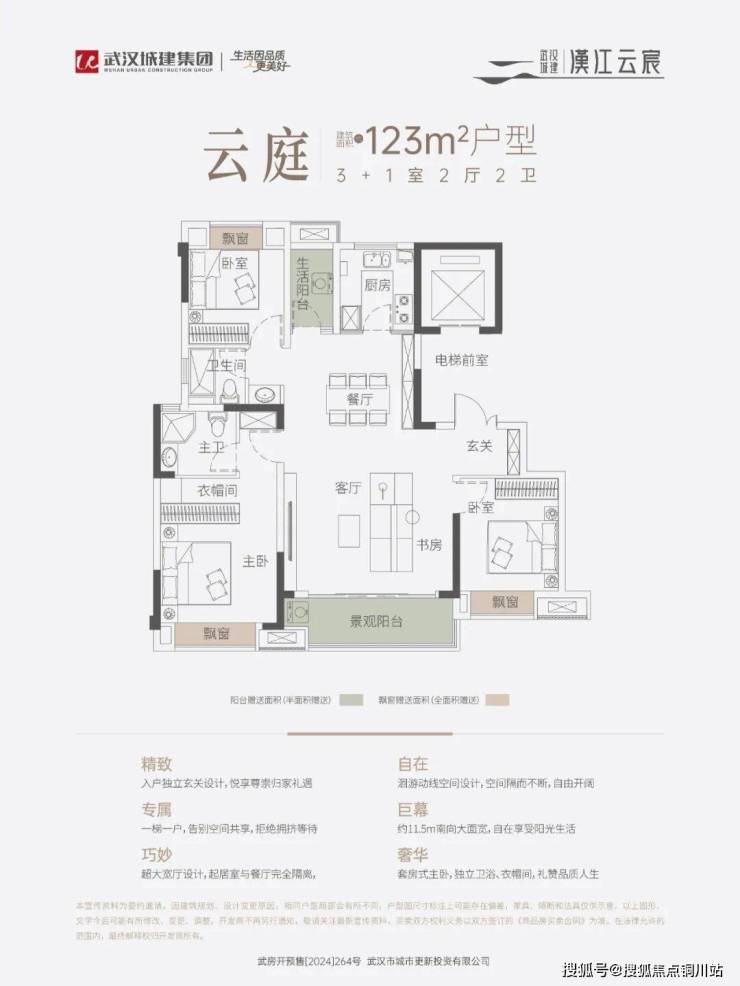 实际得房率接近四代住宅:通过电梯厅全赠送+飘窗全赠送+阳台半赠送,整体实得面积比同建面常规住宅多出15-20㎡,相当于“多得一间房”。