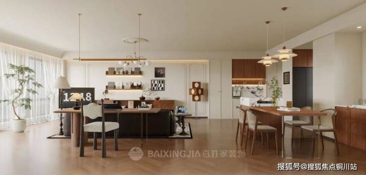 开放式布局太妙:厨房、客厅、餐厅自然衔接,动线顺得像量身定做,朋友聚餐时做饭、聊天都不隔开