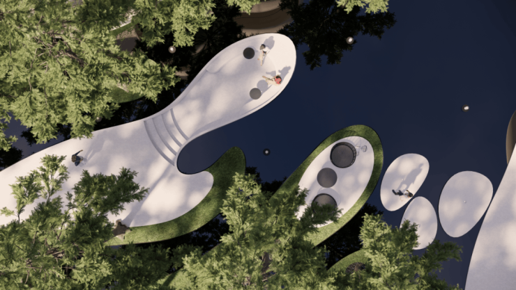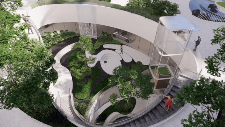 松苑将建筑以大地景观的形式呈现,让建筑、自然与人无界相生,每栋楼宇如有机生命体般错落生长,独树一帜的灵芝建筑给人塑造一种极具艺术感、未来感的生活空间,打造当代自然艺术住区。