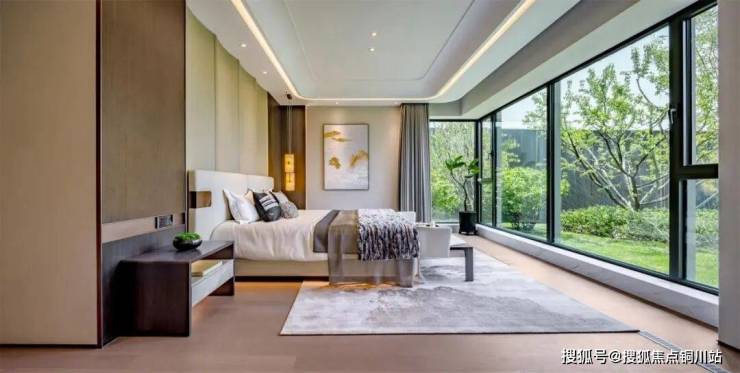 而在建面约238㎡、320㎡户型主卧中,同样设计全落地窗,并打造270°转角窗。