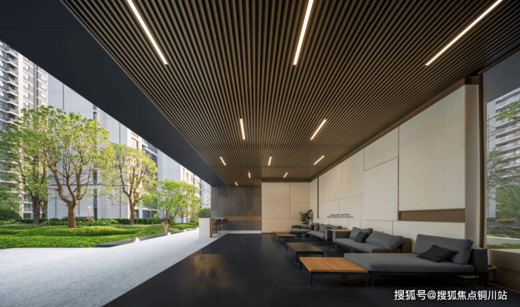 而进入楼栋内,双精装大堂入户,采用金属线条、岩板背景,呈现了明亮通透、视野敞阔的入户空间。