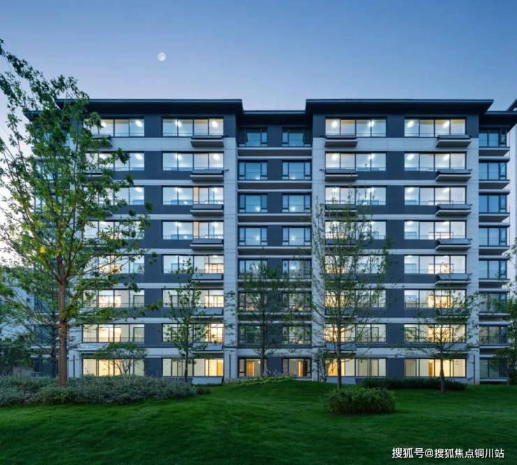项目外立面沿用现代公建化设计,18F小高层顶部飘檐,8-11F洋房中式坡屋顶,形成了三段式构图的中式对称美学。