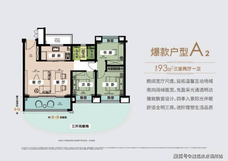大三房设计,三开间朝南,南北通透;约6.4*1.5米的南向双开间阳台,更利于打造多种生活场景;主卧私享一侧,儿童房、客卫另立一边,大大提高各自私密性。