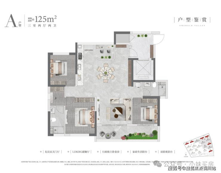 建面约125平米三房户型
