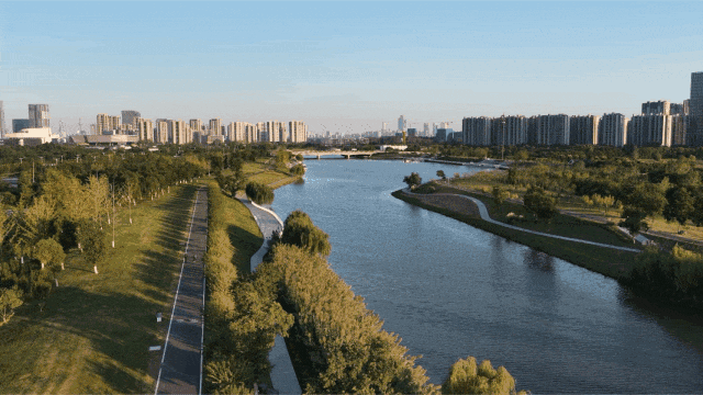 不只是河景,这里还有横穿整个江核的七里河风光带,已经先于房子建好投入使用了。