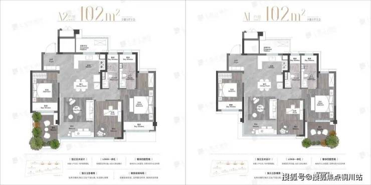 建面约102㎡,南向面宽达到约12.2米,几乎实现了传统120㎡的整体空间感,特别适合首次置业的年轻人。