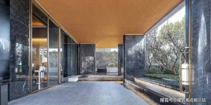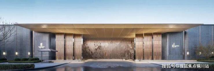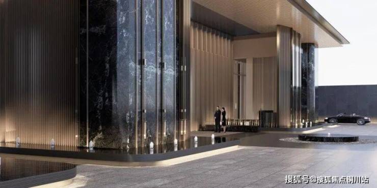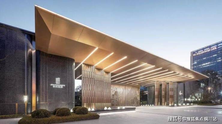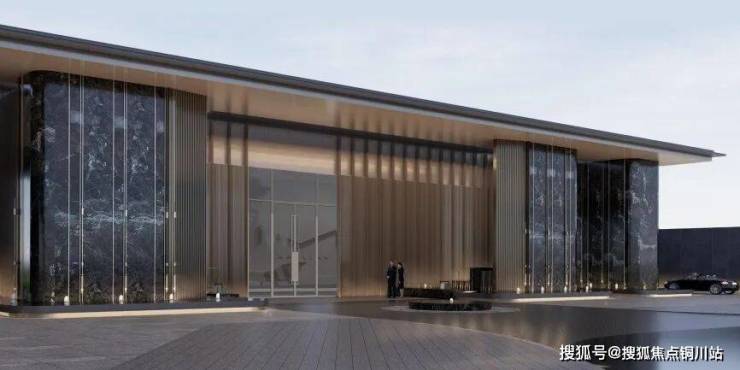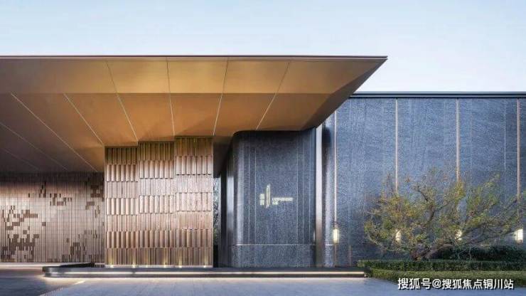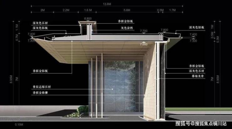 主立面的选材上,选用范思哲黑石材与香槟金铝板的组合,形成了坚实稳固而富丽堂皇之感。整个大门的设计非常简洁而大气,没有任何多余的装饰,却通过材质和造型的完美结合,展现出了非凡的气势和质感。
