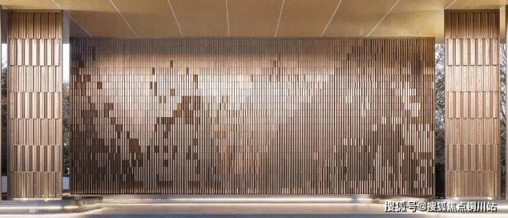 照壁上的山水图案是整个设计的亮点之一。照壁作为中国传统建筑中的一种元素,通常被用来遮挡和装饰建筑物的正门,以金属铝板的不同尺寸及角度变化,在照壁出描摹出山水图的形状。