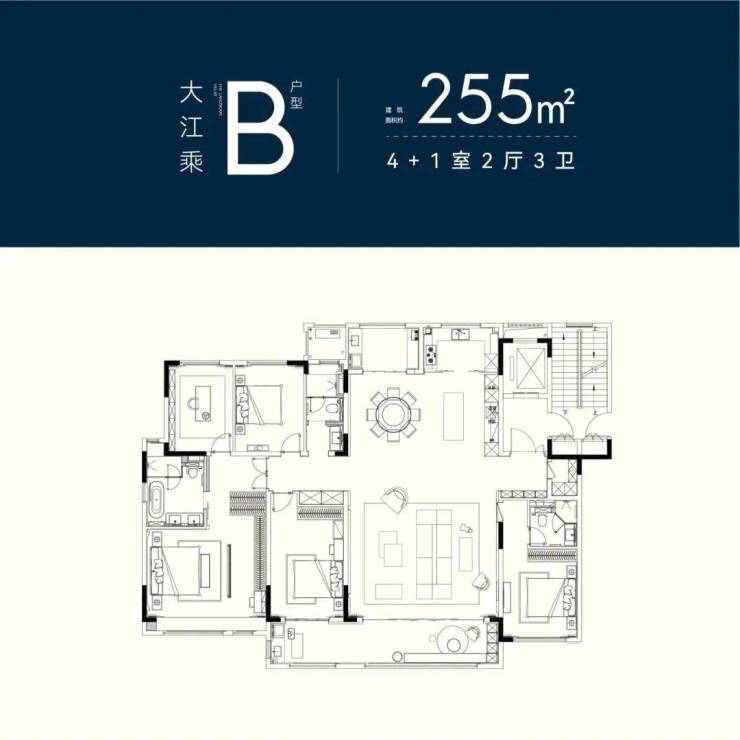 ●建面约255㎡及以上户型,主卧双开门且带独立书房;