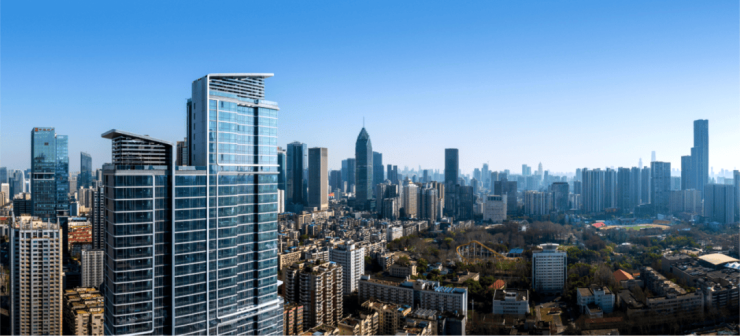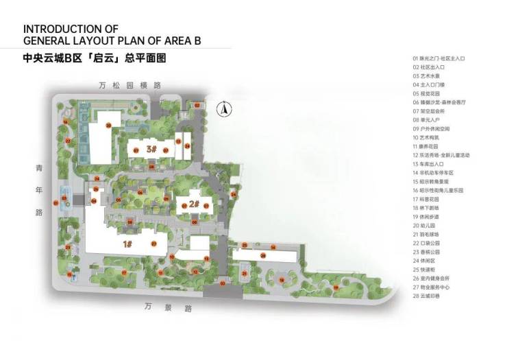 武汉中山公园片拥有武汉顶级的医疗服务机构,大型的商贸、商业、金融中心,丰富的公共活动空间。中央云城B区「启云」建筑沿场地四周布置,形成错落有致的天际线,并在中央打造景观花园,架空住宅底部,形成绿化与建筑相互渗透的关系。外部着力营造整体的建筑界面、标志性的豪宅立面。