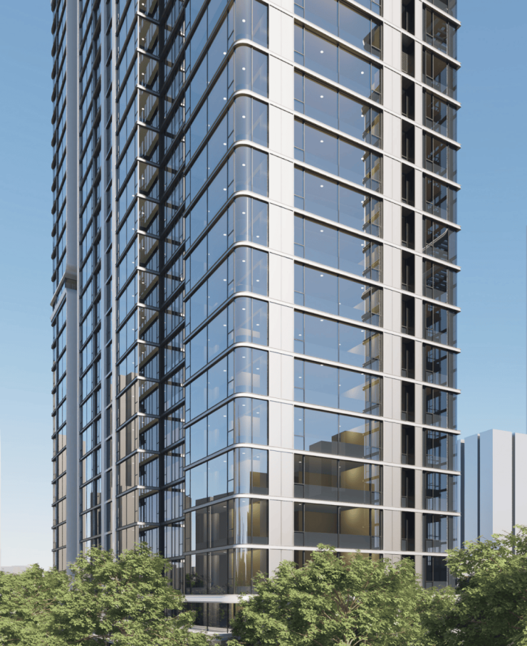建筑立面以大面积玻璃为主,辅以银灰色横向线条,打造更平面化、更有雕塑感的城市作品集群。立面大面积铝板和玻璃的运用,顶部的飘板、挑檐也成为场所归属感的标志和视觉坐标。项目团队以统一、连贯的设计语言,打造出一系列纯净简练又具有丰富光影关系的建筑,为城市赋予了现代而时尚的都市活力形象。