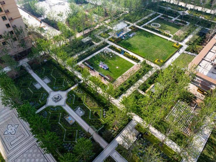 约3.6万方围合式布局的欧式府邸之内,设计17 个花园组团。