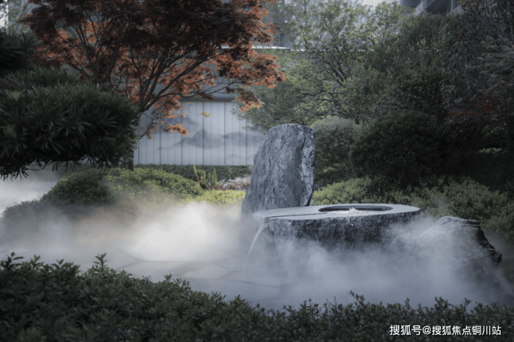 在宅前庭院,通过三个自然层次营造由近及远的山水景象,让空间后退,使层次更深远有韵味。