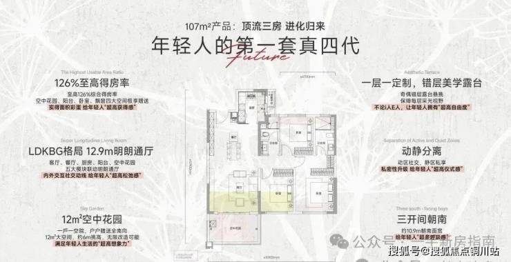 如今,107平的三房户型再次出现在C2揽境地块之上,只不过这一次这个户型产品焕新升级成为带有空中花园、综合得房率126%的真四代户型!