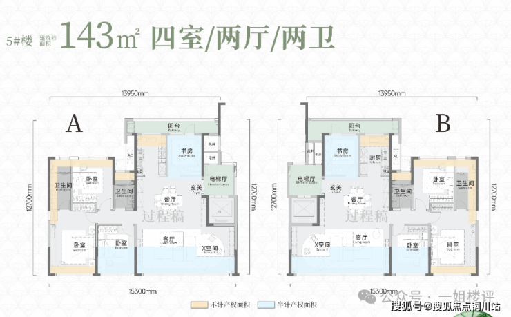 最大户型是建面约143平四房: