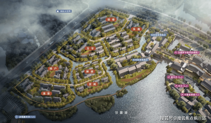 武汉甘露山文创城·江南里处于百万方大城C位,不仅优享区域价值、直面雪世界IP等流量配套资源,还邻接梦华里宋韵商街,顶层资源的叠加造就了江南里得天独厚的文旅底色,产品打造更是精雕细琢,项目规划八大岛链式组团,打造区域内前所未有的岛居墅区,社区错落分布视线无遮挡,以"一水”分“两境”,打造六园六坊,重构现代都市的山水江南,让大家日出逛街游园,归家一线瞰湖。