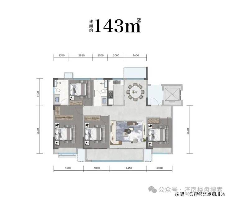 龙泉府预计首开5号楼,总高6层,真洋房,一梯两户,2个单元,户型143平四室两厅两卫,预计首开均价14000-15500元/平。